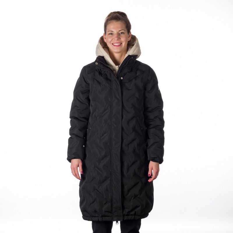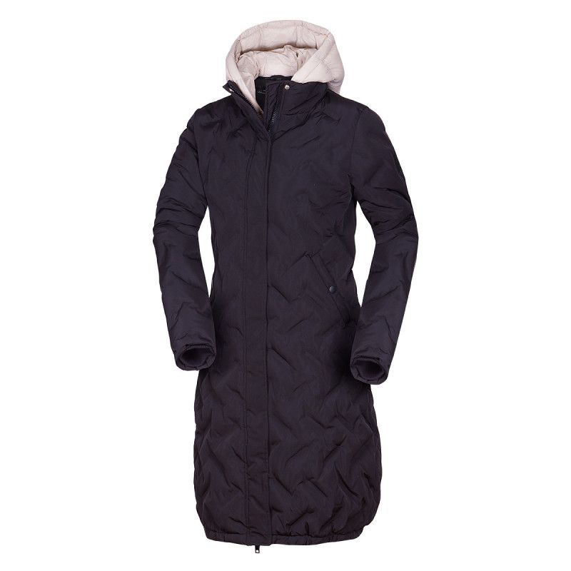 Northfinder Enid je dámska zimná bunda v dĺžke pod kolená. Zateplená a veľmi hrejivá. Klasické prešívanie je tu nahradené novou technológiou lepenia. Dsiponuje odopínateľnou kapucňou a dvoma vreckami na drobnosti. Bunda je mierne oversize strihu, ak máte radšej vypasovanejšie oblečenie, odporúčame zakúpiť o číslo menšiu veľkosť.