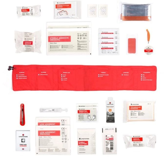 Popis výrobku: Lifesystems Bike Leader First Aid Kit je lekárnička navrhnutá na ošetrenie úrazov typických pre cykloturistiku. Celá sada prvej pomoci je uložená vo veľmi odolnom rolovacom obale z vodeodolnej textílie. Obal obsahuje 6 vreciek na prehľadné usporiadanie obsahu lekárničky, čo zaručuje veľmi rýchly a jednoduchý prístup k potrebnému vybaveniu. Obsah lekárničky je dostačujúci na ošetrenie bežných úrazov menšej cyklistickej skupiny. Vo vybavenej lekárničke Lifesystems Bike First Aid Kit, oproti iným, nájdete napríklad fyziologický roztok na vyplachovanie očí, tvarovateľnú dlahu na prsty, izotermickú fóliu aj krém proti slnku Lifesystems Mountain Sun Cream 50+.