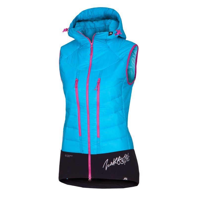 Northfinder Javorova je ľahká zatepľujúca dámska vesta s kapucňou, určená na skialp / skitouring, bežky, turistiku či iné fyzicky náročné outdoorové aktivity v chladnom počasí.Je vyrobená z kvalitných značkových materiálov: Pertex® Quantum a Primaloft® Gold Active.
