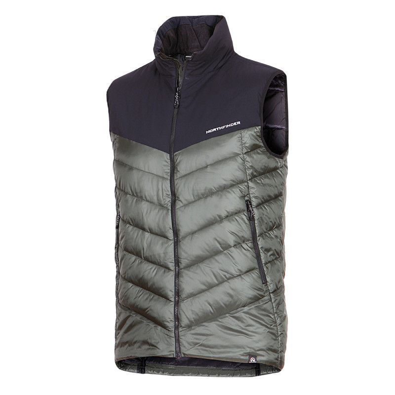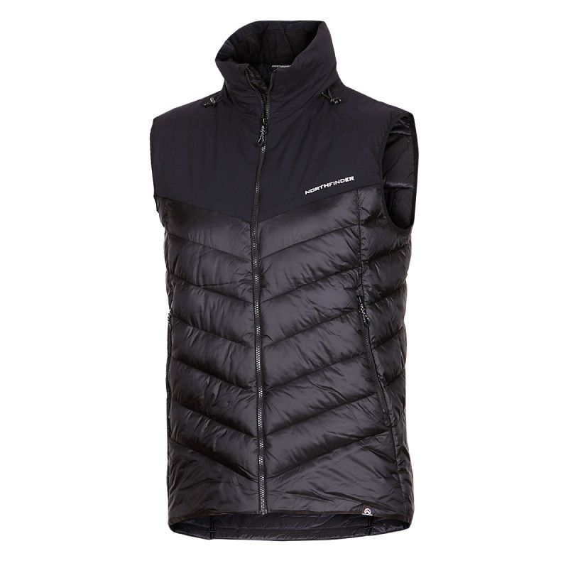 Northfinder Jedrick je pánska outdoorová zateplená vesta, ktorá je vetruodolná, vodeodpudivá, odolná, priedušná a má skladovateľnú kapucňu.