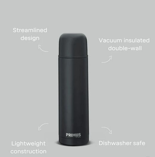 Dvojstenná termoska Primus Classic Light Vacuum Bottle je vyrobená z jemne brúsenej nerezovej ocele 18/8. Litrový model je najväčší zo širokej škály objemov od 0,35 litra, cez pol litra a 0,75 litra až po 1 liter. Termosky Primus Classic Light ponúkajú vynikajúci pomer ceny a kvality. Ich postirebrené vnútro zabezpečuje odolnosť vočí zachytávaniu pachov z nápojov, vonkajší brúšený povrch termosky je veľmi príjemný a praktický na manipuláciu. Viečko zároveň slúži ako hrnček.
